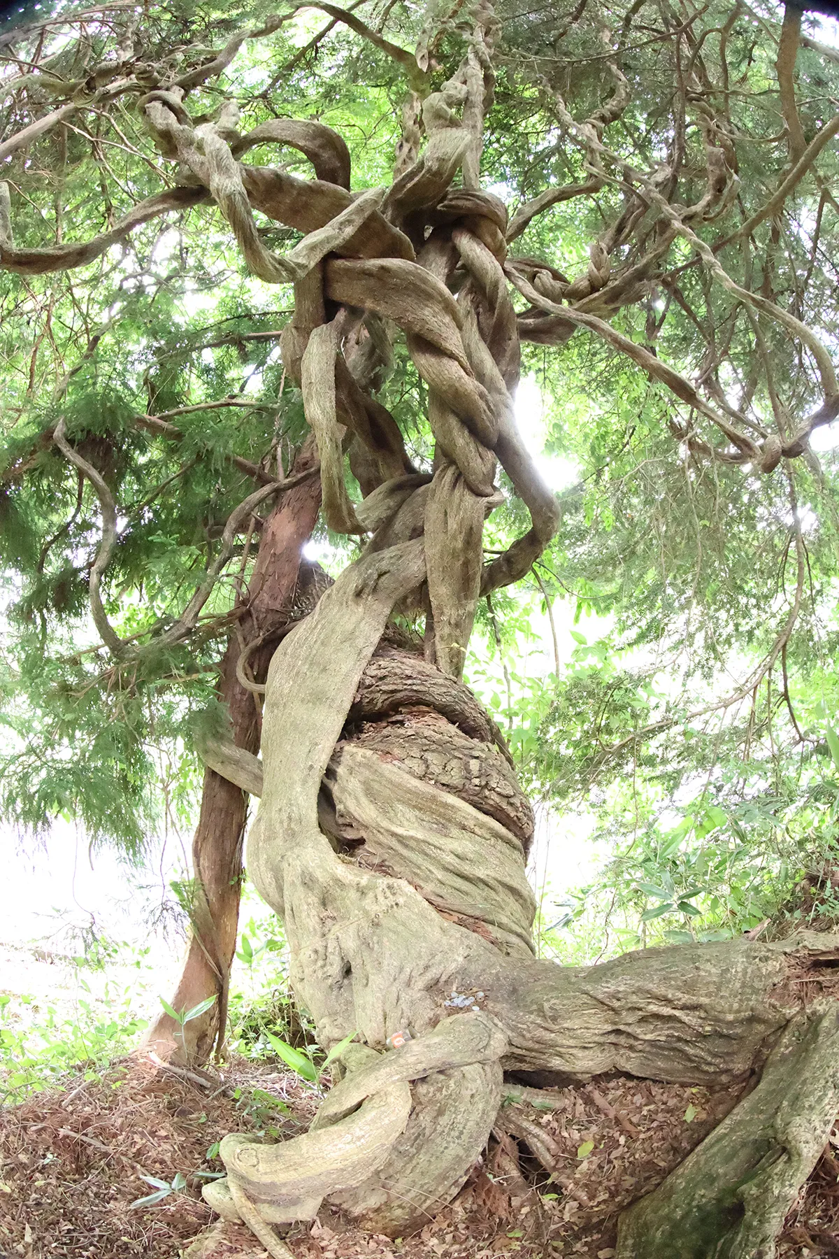 天に向かってまっすぐに伸びる二本の杉の根元は一つになって大地にしっかりと根付いています。